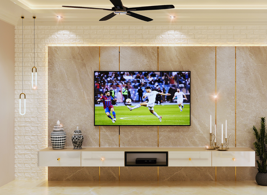 E-Space Interiors designs modern TV units with smart storage and elegant finishes to enhance your living space.